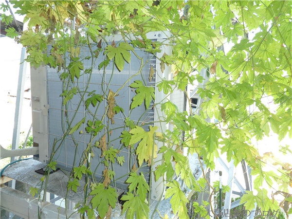 また、グリーンカーテン効果のお陰もあって今夏の事務所のエアコン使用は6回で済みました。