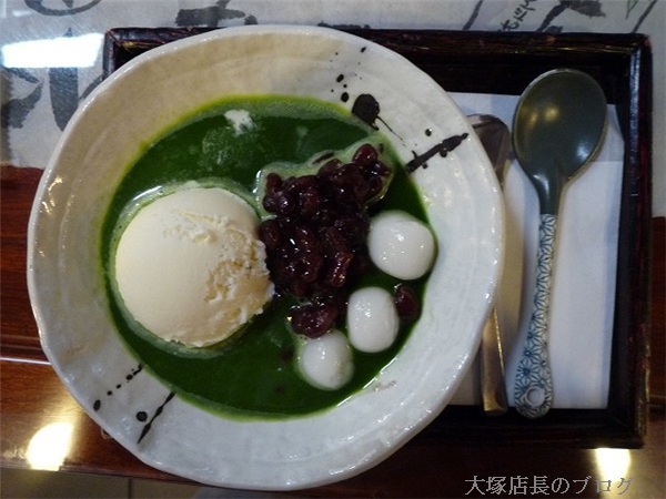 今日は群馬県桐生市の本町通りございます「矢野園」さんにて、有鄰(抹茶白玉クリームぜんざい)を食べました。