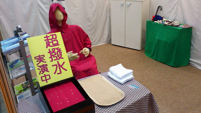 製品の撥水性を皆様にご覧いただくために撥水装置も設置