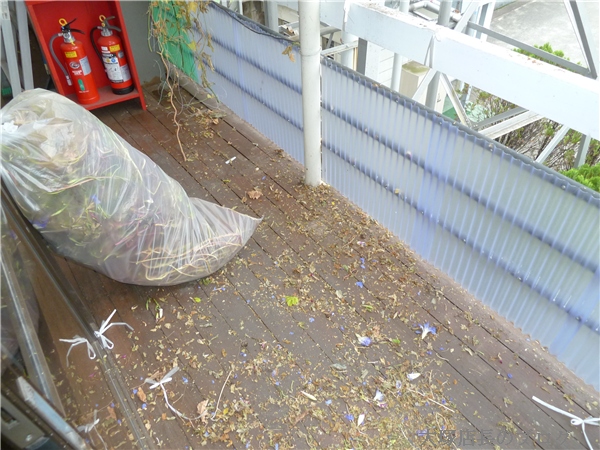 まず、プランターを移動して、その後にネットとつるを事務所のみんなで撤去しましたが、結構な量になりゴミ袋を何個も使いましたよ。