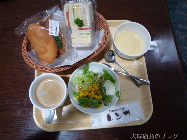 普段はお持ち帰りなのですが、今回は好きなパンを選んでスープ・サラダセットにしました。